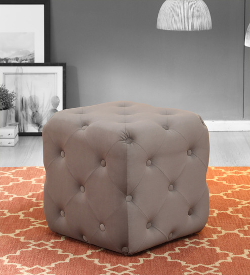 Harold Fabric Pouffe in Grey Colour
