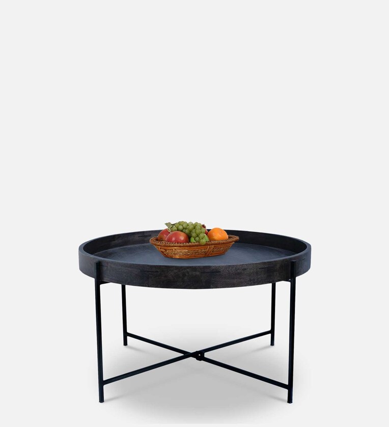 A sleek modern coffee table a contemporary look that makes attraction for any living room or bed room. Rustic grey wash wood finish with black powder coat finish sleek iron legs makes statement piece and gives luxurious look.