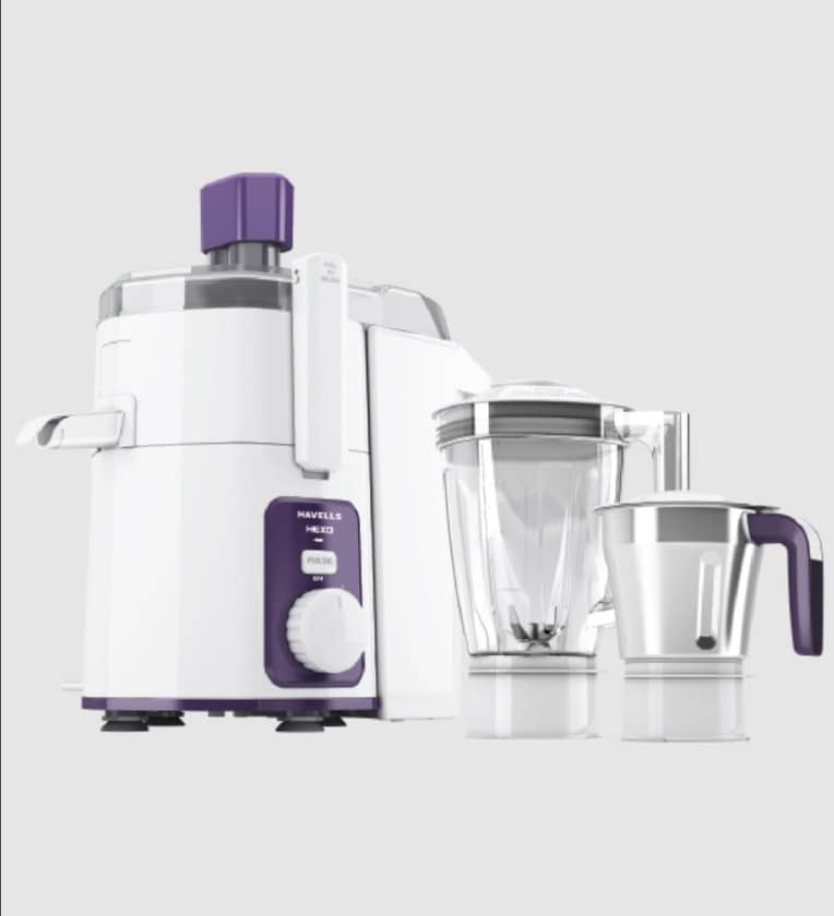 Havells Hexo 1000W Juicer Mixer Grinder with 2 Jar (White)