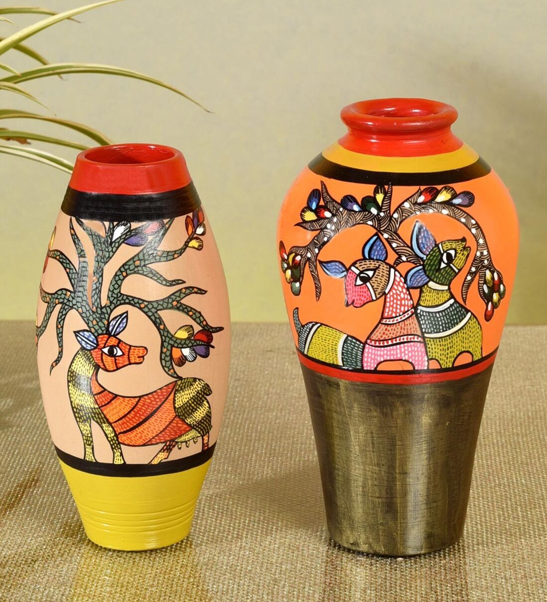 Heard Of Deers (Set Of 2) Multicolour Terracotta Floor Vase