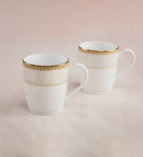 Hearth Collection Gold & White Porcelain (Set of 6) Coffee Mugs