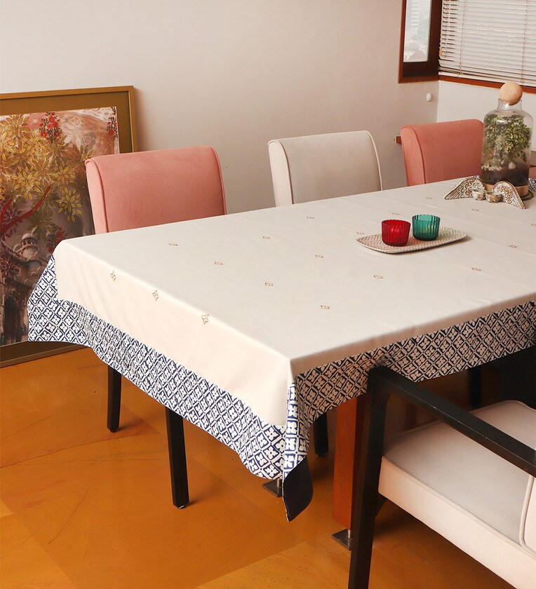 Heather (52x84) White & Blue Cotton Blend Table Cloth