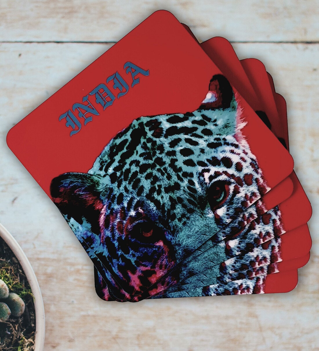Set of 6 Pop Art Leopard Print India Souvenir Coasters