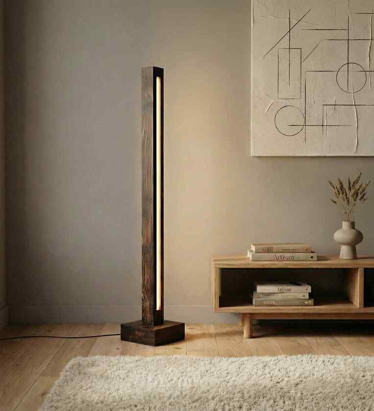 Excalibur Brown Wooden LED Floor Lamp with brown base