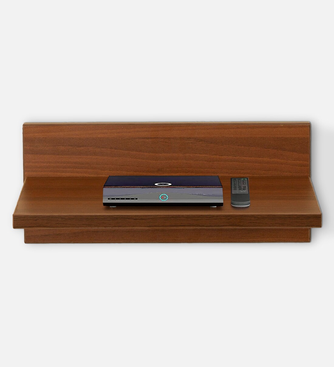 This floating shelf T.V console unit is a must have for every home as it is made to be sturdy and stylish which will enhance the over all look of your home. Finish type-prelam finish: Pre-laminated 3D woodgrain laminate with melamine facing on both sides in wood grain walnut colour which protects the substate from heat, scratches, moisture, stains etc. This helps to enhance looks & to increase durability. Finish type - 4 side edge banding: High quality, machine pressed PVC edgebanding in matching colour laminated on 4 sides ensures smooth finish along the edges thereby protects the core within from moisture or direct contact with water. Finish type - Melamine finish: The console unit is made of engineered wood with melamine faced laminate. This offers durability and resistance to moisture, scratches and easy to clean. Treatment type - formaldehyde resin for lower emission: Engineered wood panels are pretreated with industry standard chemical composition thereby making the core resistant to termite, borer and other mites. Certification - E2 boards: Engineered wooden panels used is certified European Emission standard E2 grade, therby its certified safe for indoor furniture application. Storage Type - Shelf storage: Shelf storage is ideal for set-top boxes and for other small electronic devices. Size - Compact.