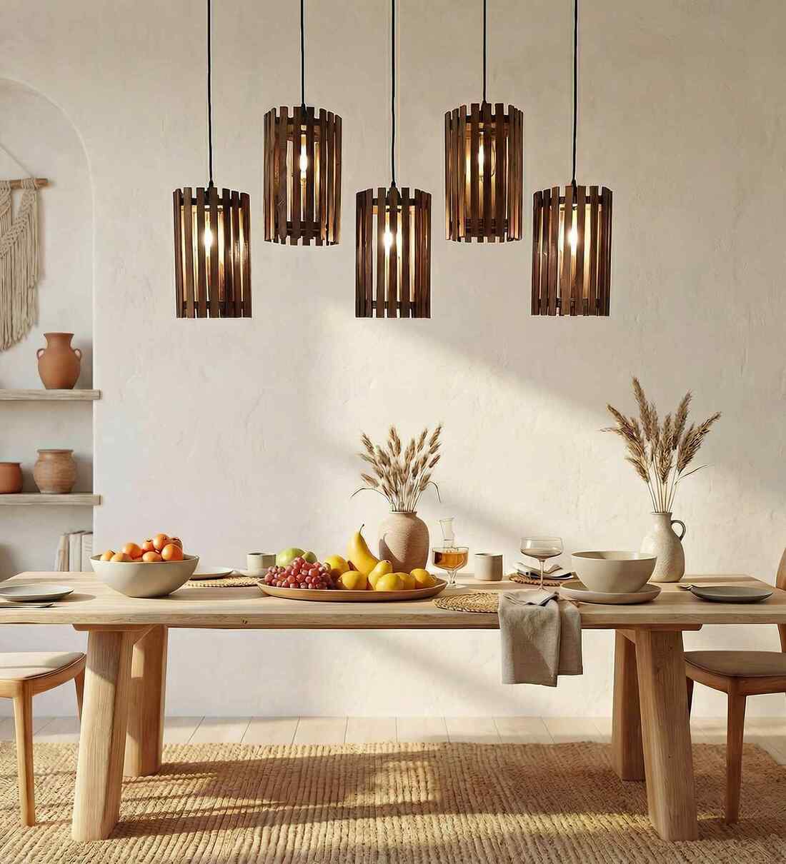 5 Wooden Hanging Lights with a Wooden top plate