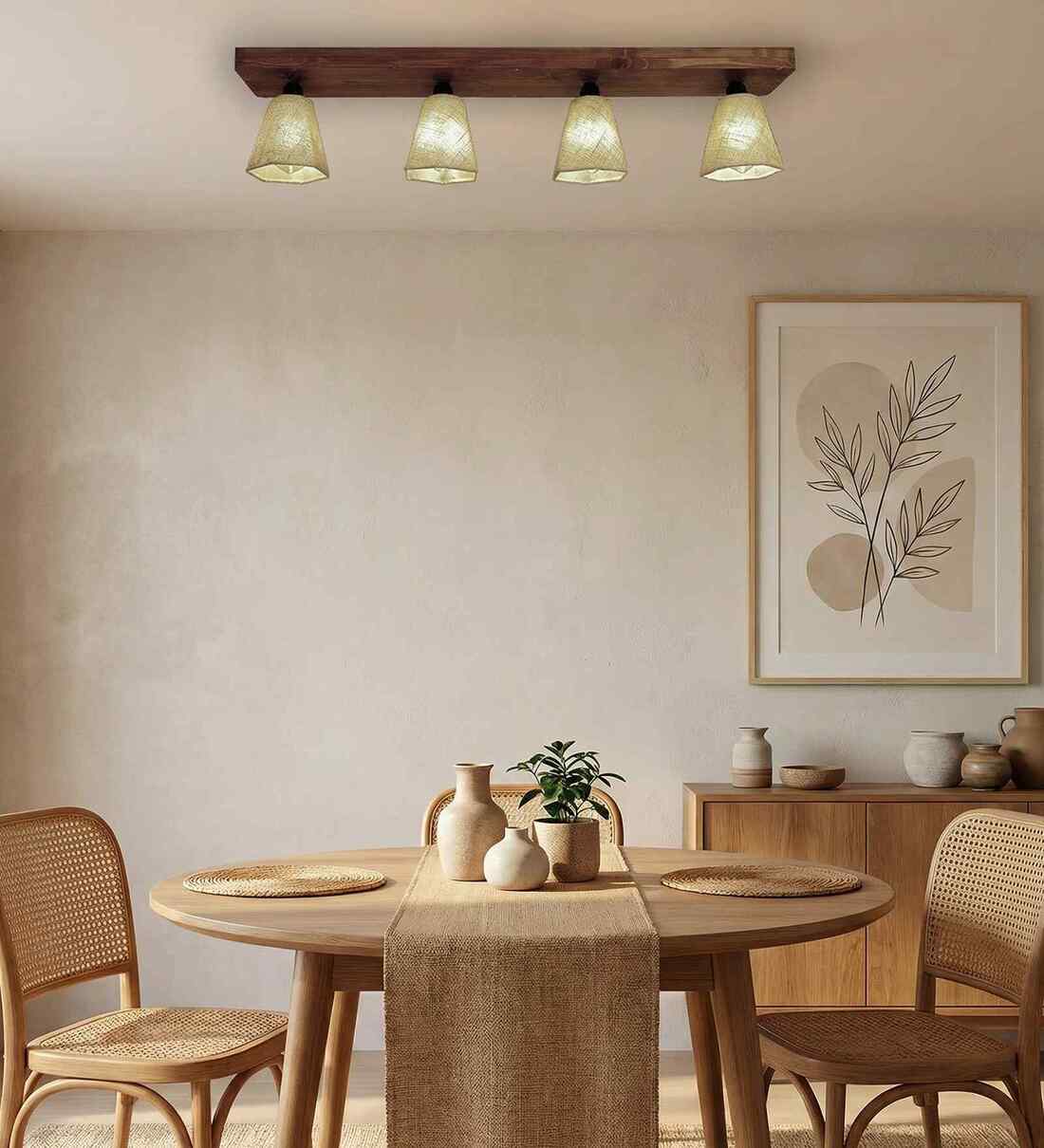 Hexagon 4 Lights Beige and Brown Solid Wood Flush Mounted Ceiling Light