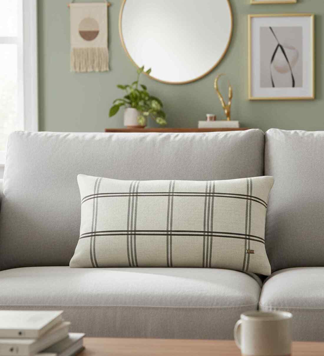 Enhance your decor with Windowpane Cushion Cover. This beautifully made Textured cushion cover (No Fill Inside) is expertly knitted in 100% Quality Cotton.