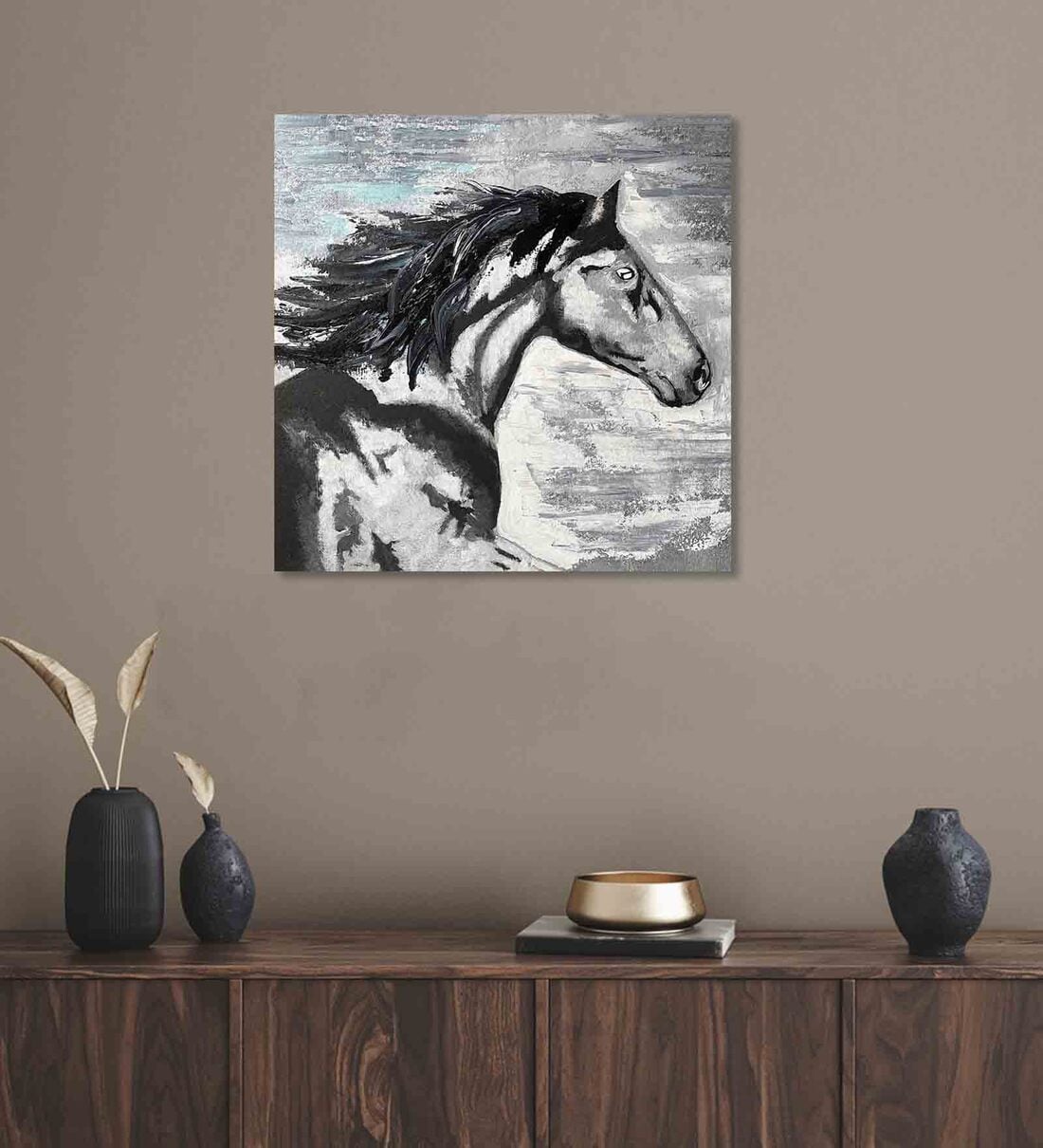 Horse Multicolour Teak Wood Canvas Art Print