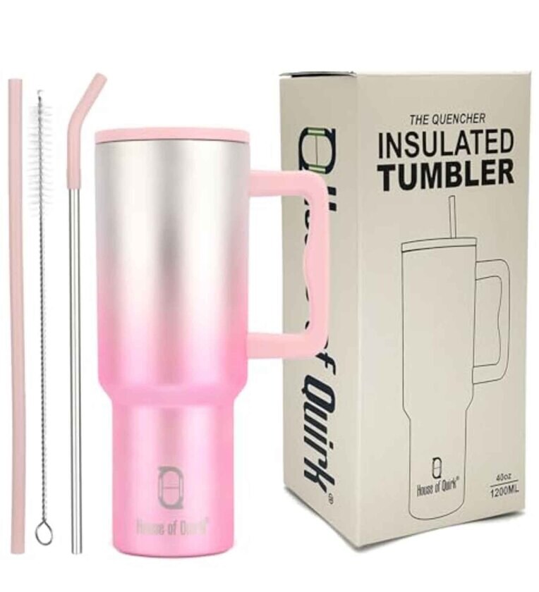 House of Quirk 1200ML Stainless Steel Tumbler Hot and Cold with Handle and Lid 2 Straw, Double Insulated Cup 100% Leak Proof Mug Cupholder for Gym, Travelling (Electric Pink)
