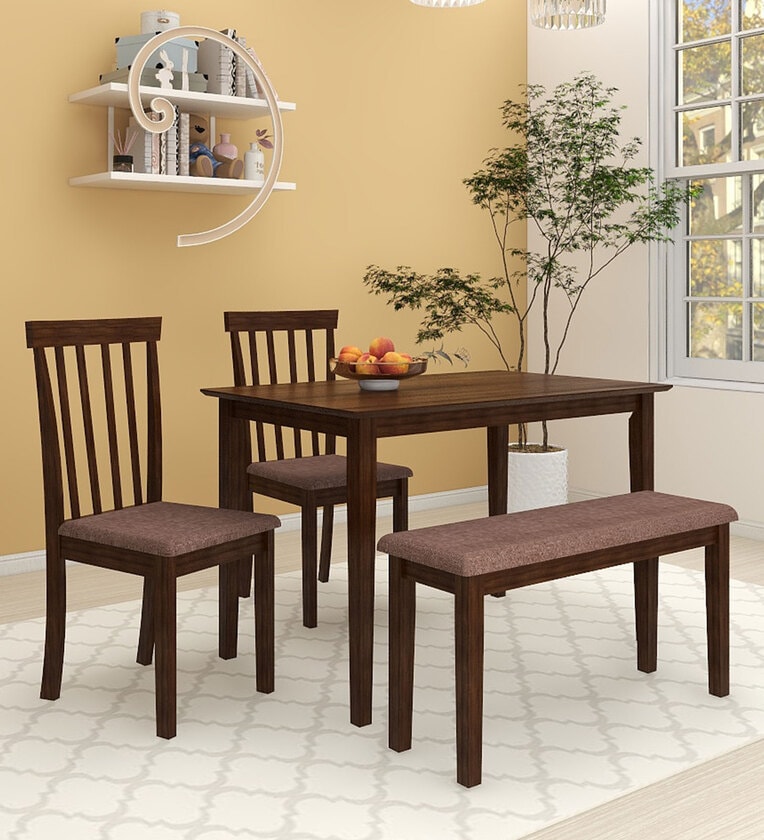Houston Solid Wood 4 Seater Dining Set With Bench In Brown Finish