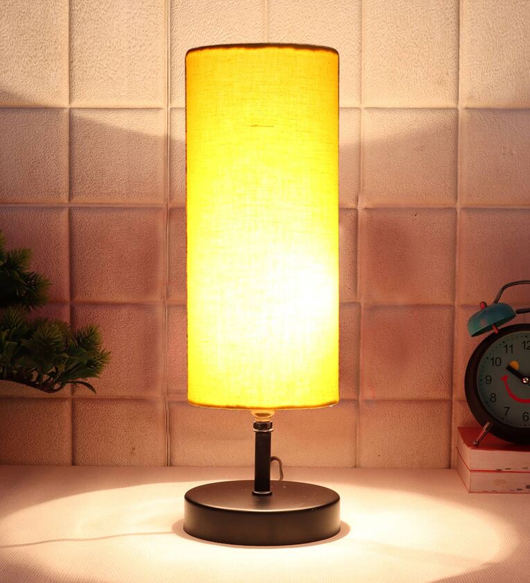 Hudson Yellow Cottan Fabric Shade Table Lamp With Iron Base