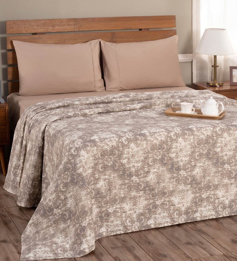 Beige Abstract 300 TC Cotton and Viscose Double Bed Cover