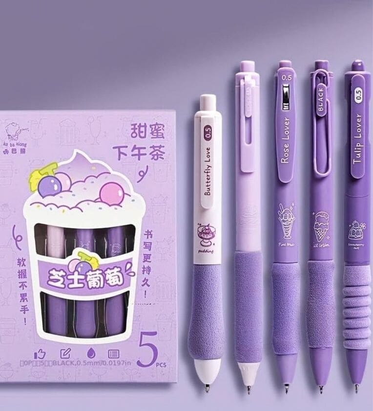 The aesthetic school pen set includes 5 packs of 0.5mm black ink pens, each pen has a different coffee element design in detail, such as caramel macchiato, vanilla latte, cappuccino, classic American, and espresso bringing, you various fashion writing experiences while working, signing, filling tabs, and painting.