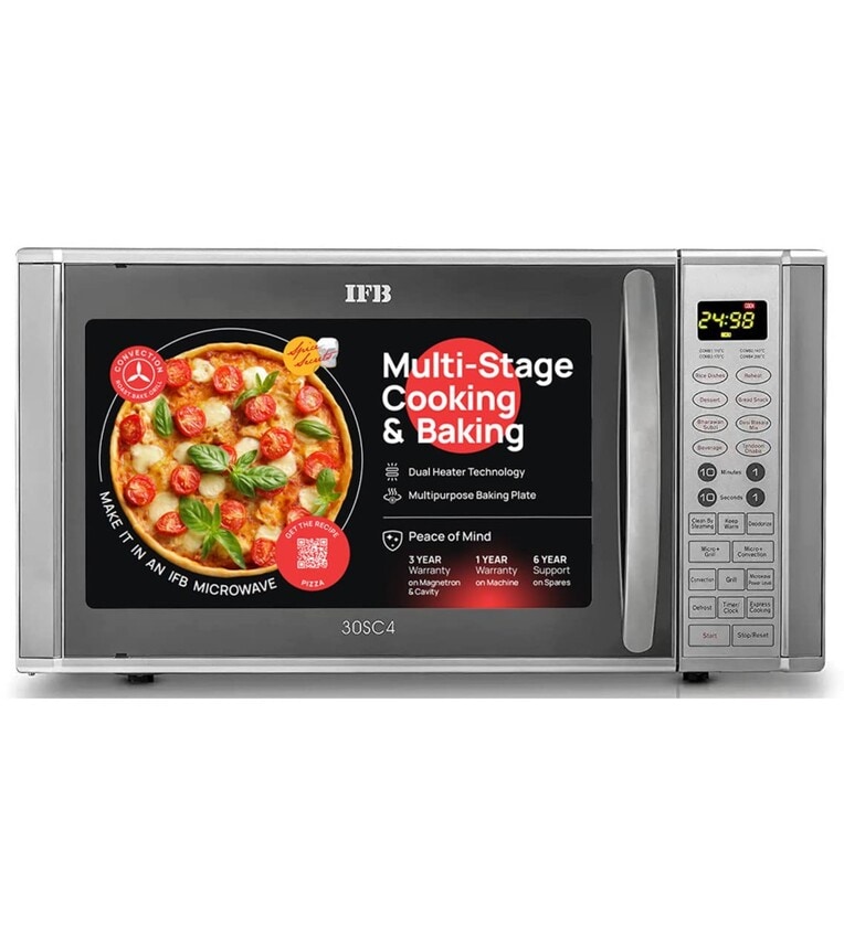 Stainless steel cavity and LED display Clock with timer, 10 power levels, Cooling feature and keep warm, Operating Voltage: 230 volts Combi-Tec: 2 - (Grill + Microwave) and 4 - (Convection + Microwave) Warranty: 1 year on product and 3 years on magnetron and cavity Speed defrost, steam clean and multi stage cooking 101 cooking menus, express cooking, auto reheat and deodorize Sensor malfunction protection, over heating protection and child safety lock