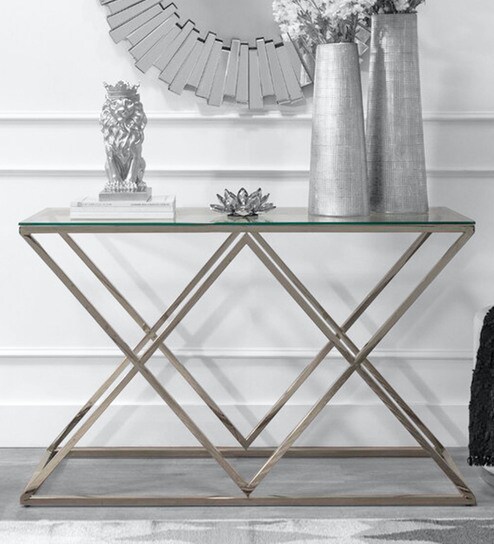 A Console Table is wide, shallow and roughly as tall as a regular table or desk which sits up against a wall. The average console table height is 30 inches, though designs can range anywhere from 28 inches to 32 inches in height.