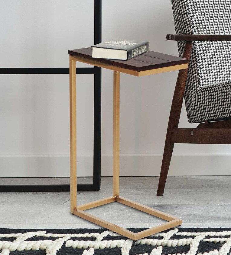 The AVA DESIGNZ End Table will provide a stylish and convenient addition to enhance any room. This end table has a modern style, which will add a contemporary piece to your room that fits with any interior design. It features a metal frame, creating the look of industrial aesthetics in your living space. With a wooden top, this end table is a design staple that conveys elegance and charm. It features a sturdy design, which keeps it in great shape.
