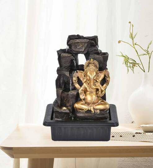 Impression Ornate Ganesha Black & Gold Polyresin Water Fountain