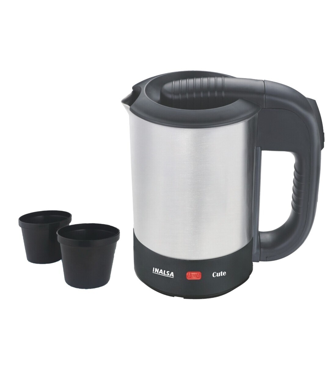 INALSA Cute 0.5-Litre Electric Travel Kettle With 2 Cups (Silver)