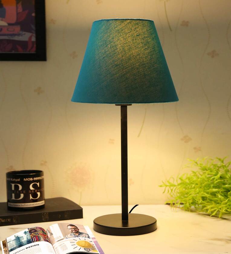 Indulge Blue Cotton Shade Night Lamp With Metal Base
