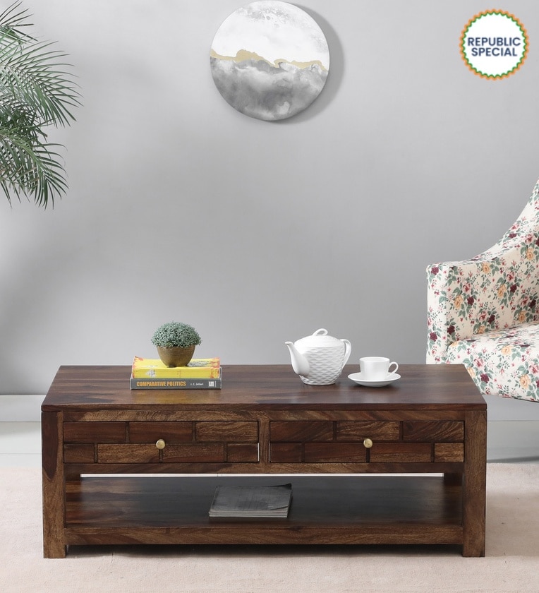 Indus Sheesham Wood Coffee Table In Provincial Teak Finish