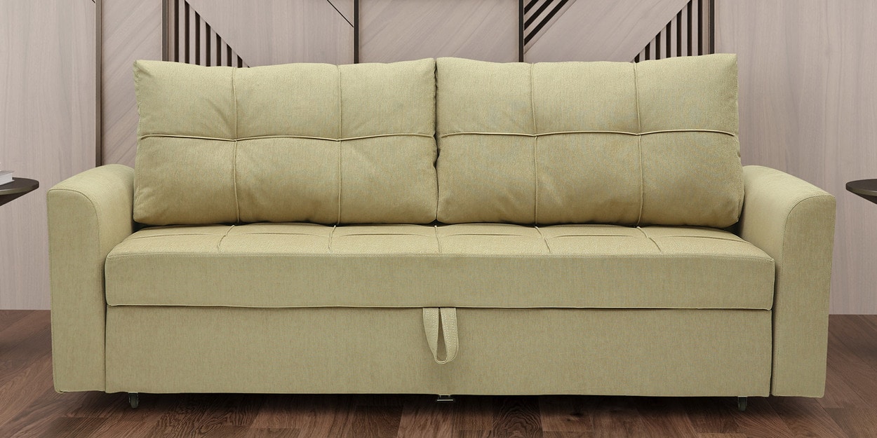 Ines Chenille Fabric Pull Out Sofa Cum Bed In Beige Colour With Storage