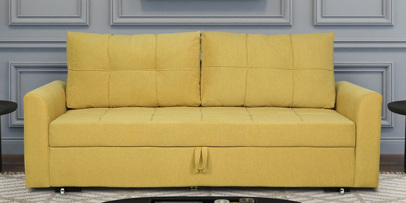 Ines Chenille Fabric Pull Out Sofa Cum Bed In Yellow Colour With Storage