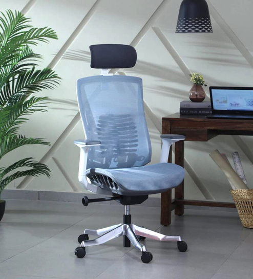 Inspire Breathable Mesh Ergonomic Chair in White & Blue Colour with Headrest