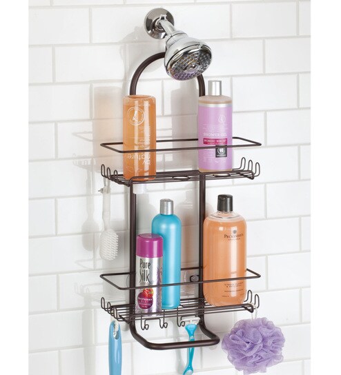 The InterDesign Classico Modern Shower Caddy provides extra-large storage for shampoo, conditioner, soap, razors and more. Two shelves accommodate larger bottles and the non-slip clip works with two suction cups to keep your caddy in place.