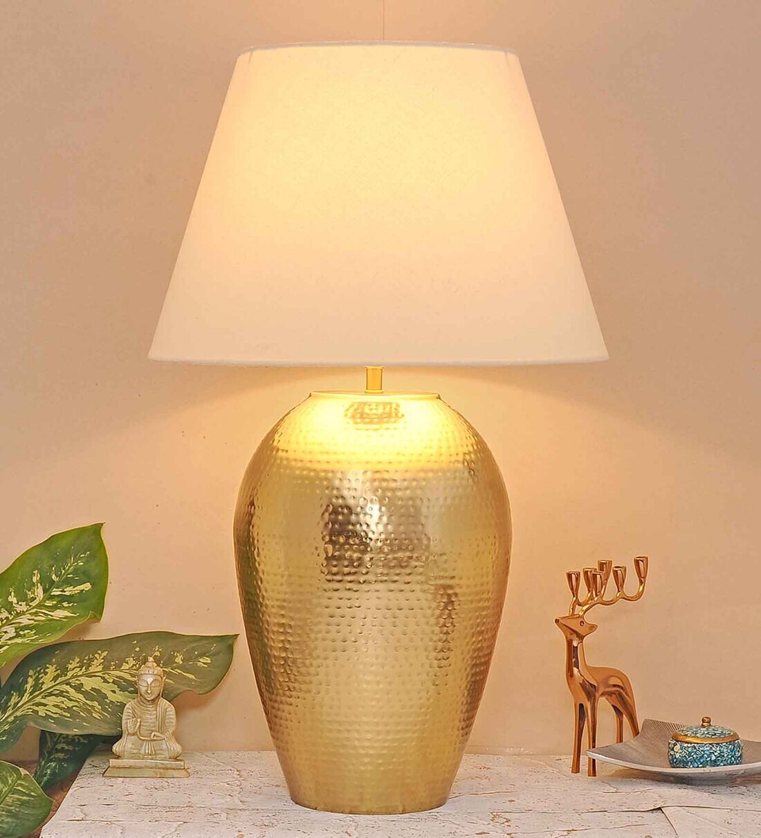 Inverted White Cotton Shade Night Lamp With Mild Steal Base