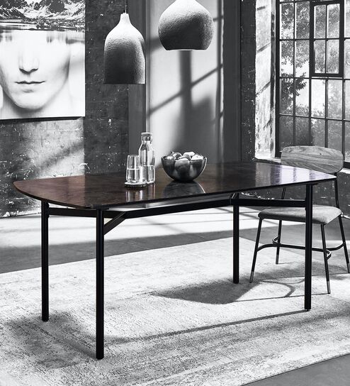 Ipiano Marble Top 6 Seater Dining Table in Black Finish