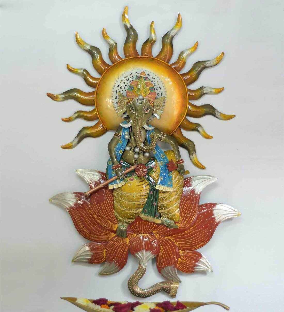 Iron Ganesha Lotus Flower Wall Art