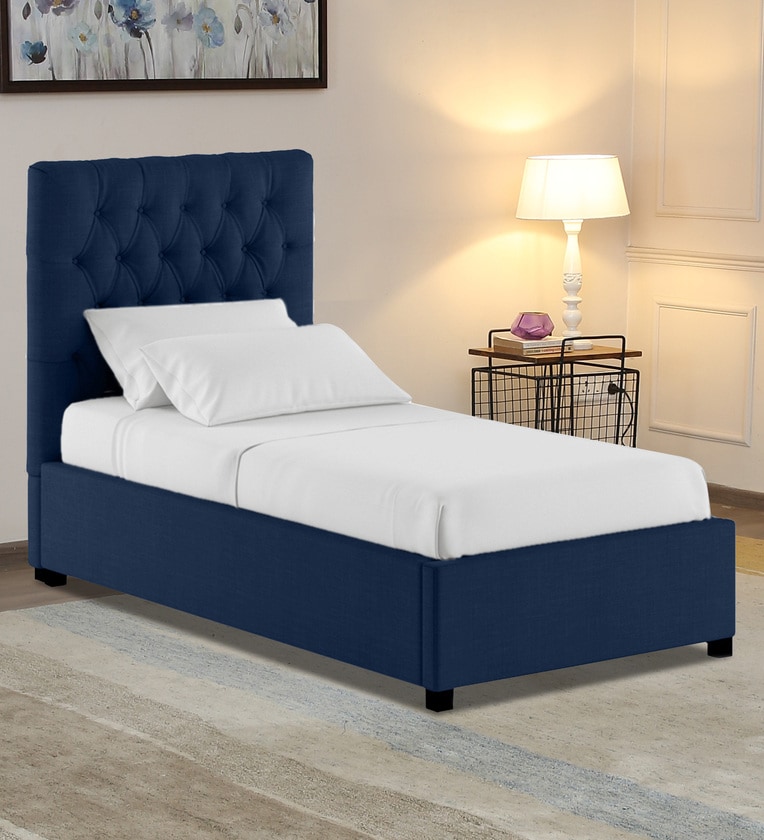 Isko Fabric Upholstered Single Bed in Royal Blue Colour with Hydraulic Storage