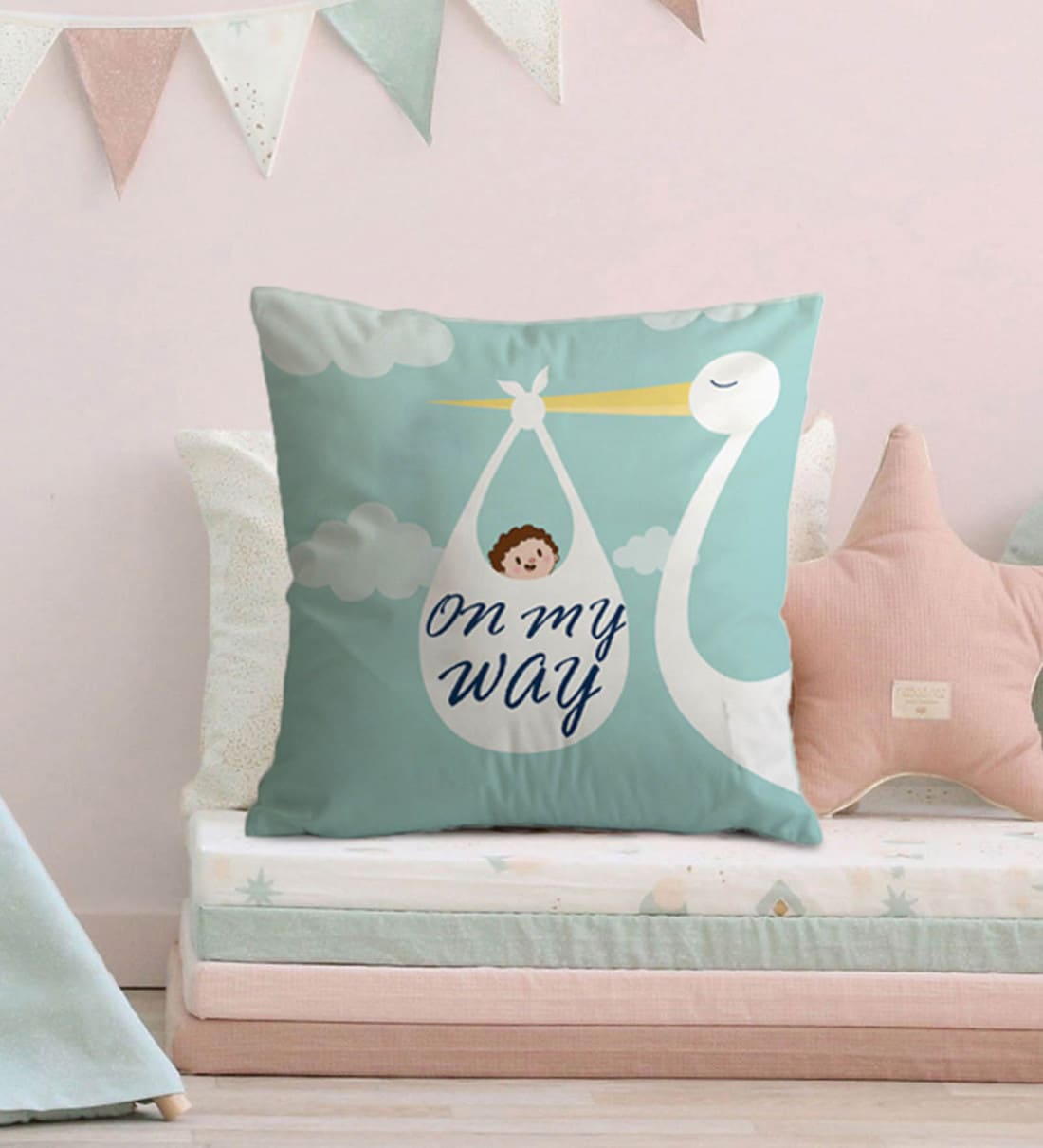 Canvas Cushion with Bird & Baby Print