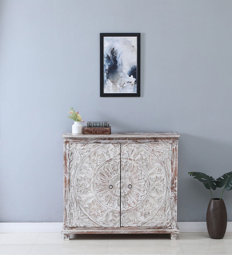 Ivor Solid Wood Cabinet In White Distress Finish