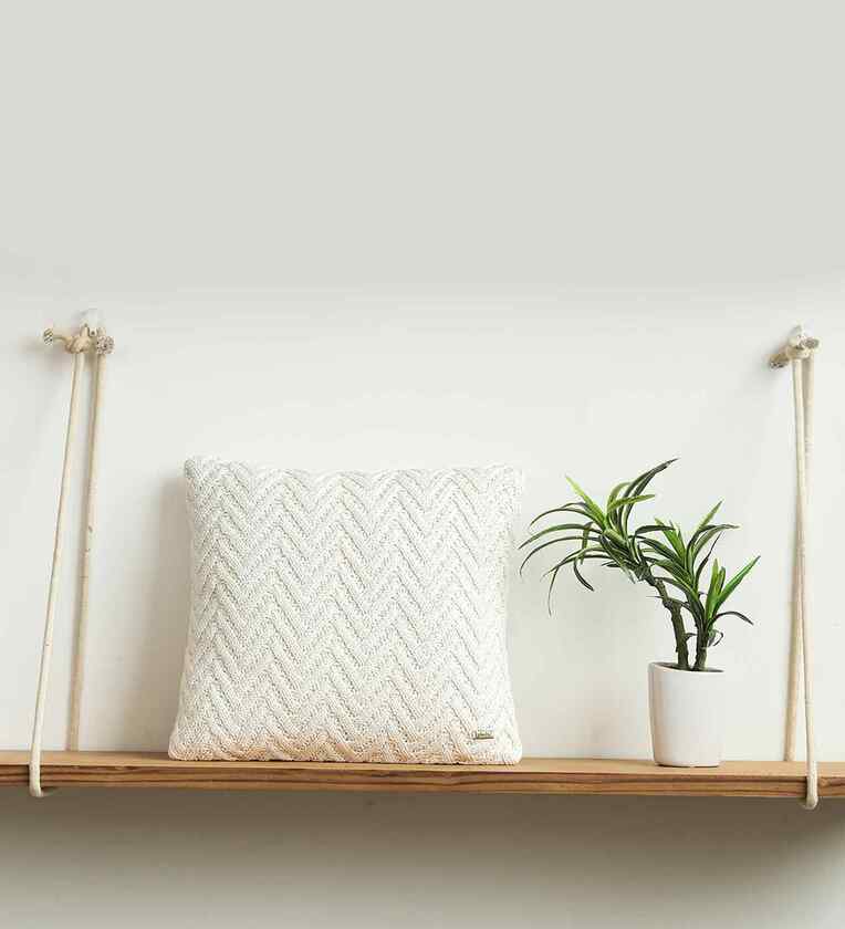 Enhance your decor with Chevron Cushion Cover. This beautifully made Textured cushion cover (No Fill Inside) is expertly knitted in 100% Quality Cotton.