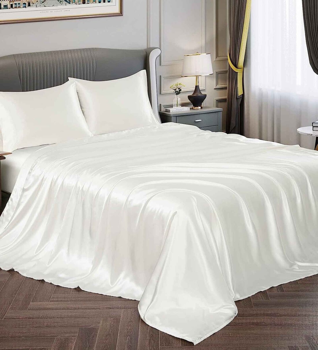 1 Bedsheet with 2 Satin Pillow covers
