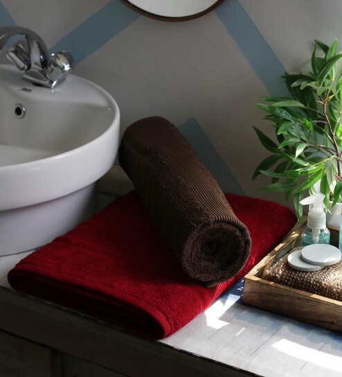 Maroon & Brown 100% Cotton 450 GSM Bath Towels (Set Of 2)