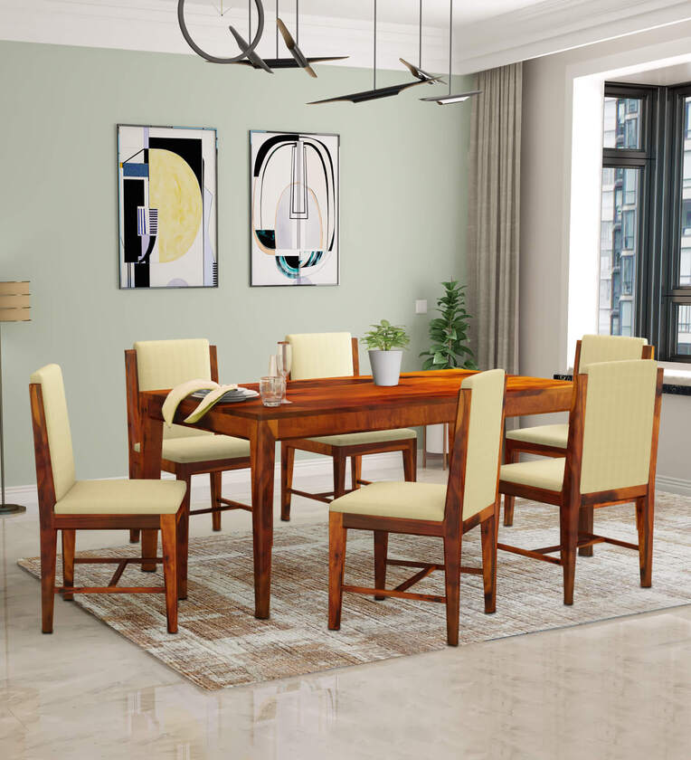 Jeck Solid Wood 6 Seater Dining Set In Honey Finish
