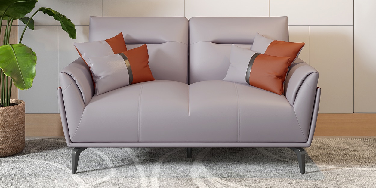 Includes: 1 two-seater sofa & 2 throw cushions Kiln-dried solid wood frame makes it warp and scratch-resistant. Sleek metal legs in black finish complement the design. Breathable leatherette upholstery feels soft and keeps you cooler for longer. Anti-peel, easy-to-maintain upholstery is ideal for active families with kids and pets. Leatherette throw cushions in vibrant hues add a pop of colour to your space. Tufted cushioned back and flared padded arms offer comfortable seating. Anti-sag construction offers the right level of support for maximum comfort. High ground clearance, designed for modern Indian homes. This product is a part of the Jonas Collection.
