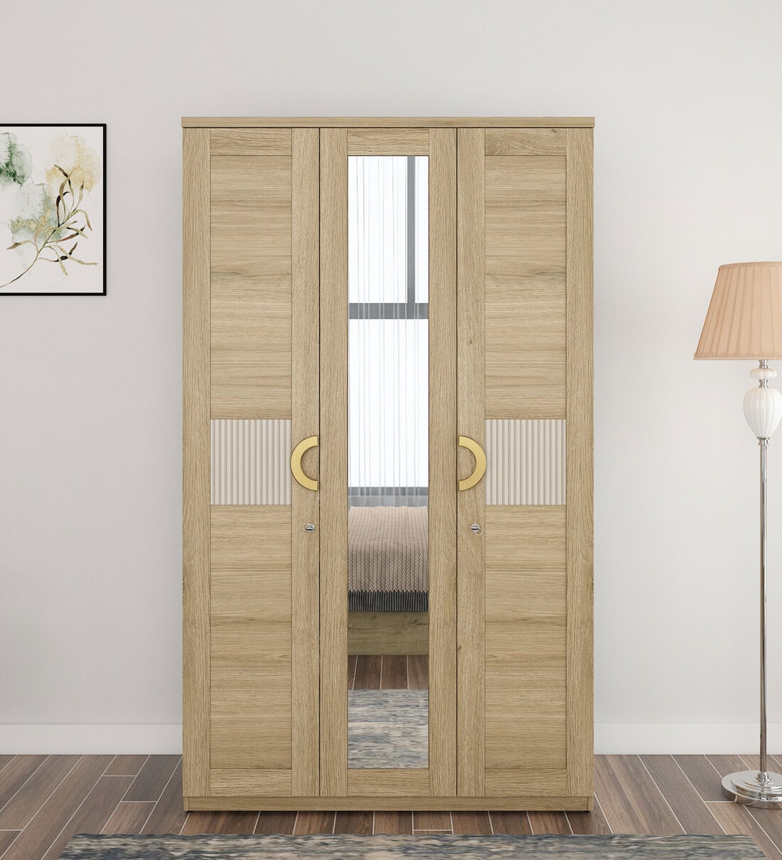 Jovana 3 Door Wardrobe In Santano Oak Colour With Drawer & Full Length Mirror