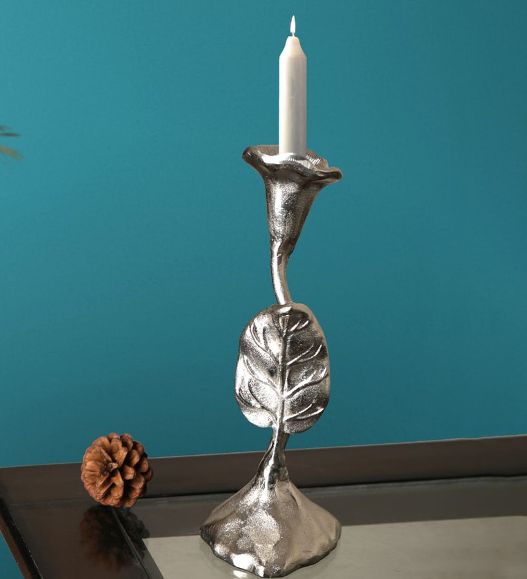 Jules Leaves Medium Silver Aluminium Candle Holder