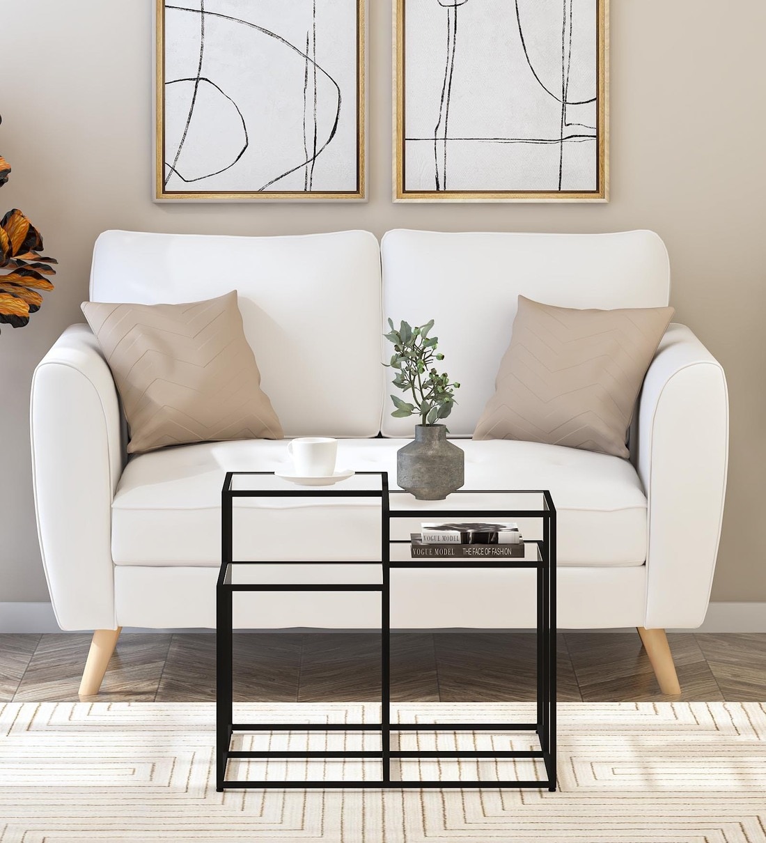 Julian Square Metal Coffee Table In Black Colour With Glass Top