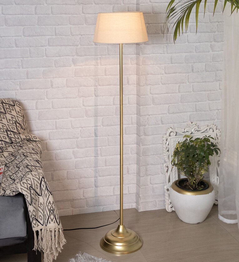 Jumilla Khaki Cotton Shade Club Floor Lamp With Metal Base
