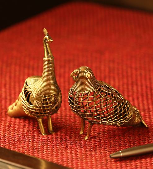 ExclusiveLane 'Golden Birds' Handmade Brass Showpiece In Dhokra Art (Set Of 2)