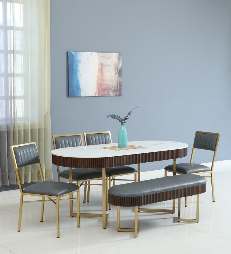 Kaffka Metal 6 Seater Dining Set In Brass Electroplating Finish With White Porcelain Top