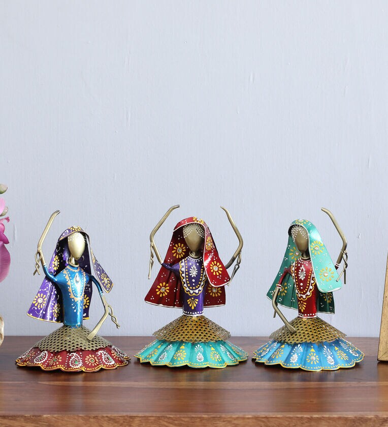 Kal Baliya Set Of 3 Multicolour Iron Figurines