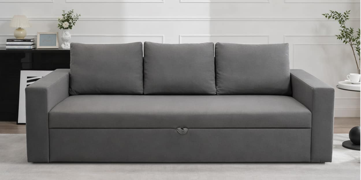 Kara Fabric 3 Seater Pull Out Sofa Cum Bed In Grey Colour