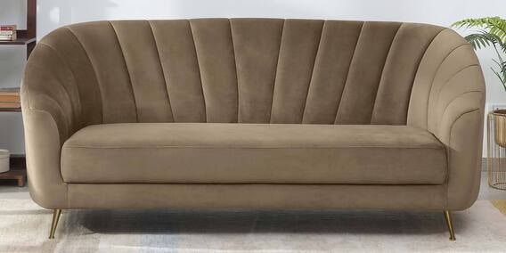 Kaylee Velvet 3 Seater Sofa in Beige Colour