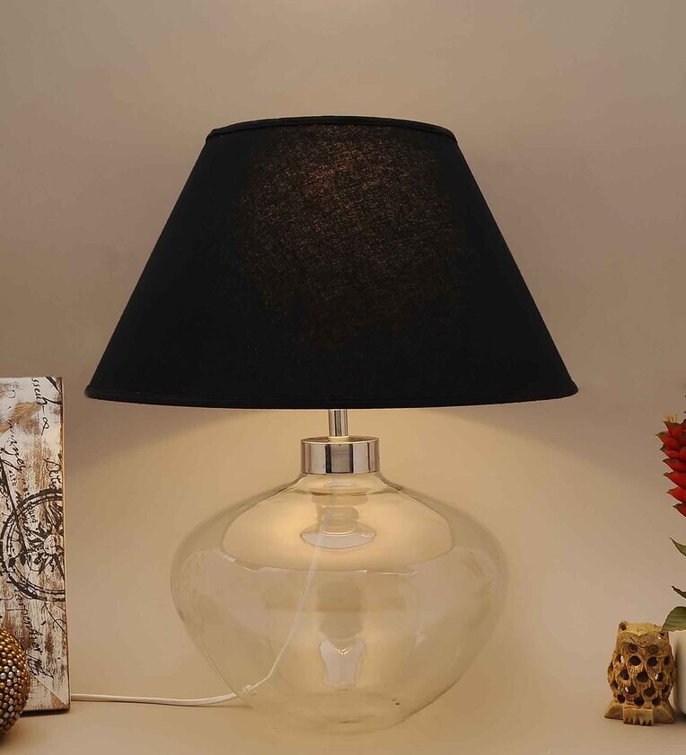 Kevin Black Cotton Shade Night Lamp With Metal & Glass Base